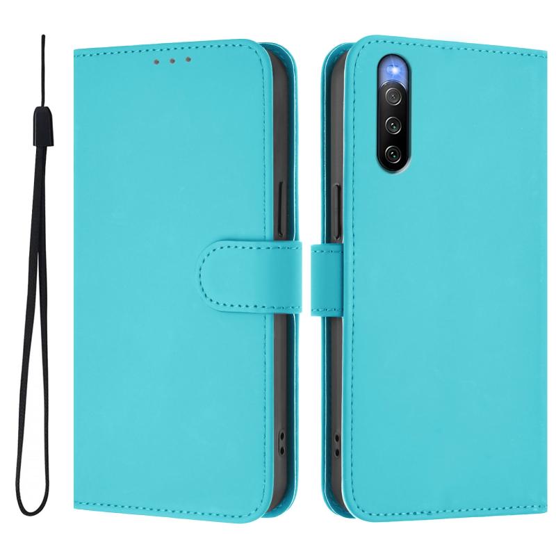 For Sony Xperia 10 V 2023 Skin Feel Solid Color Leather Phone Case with Lanyard(Lake Blue)