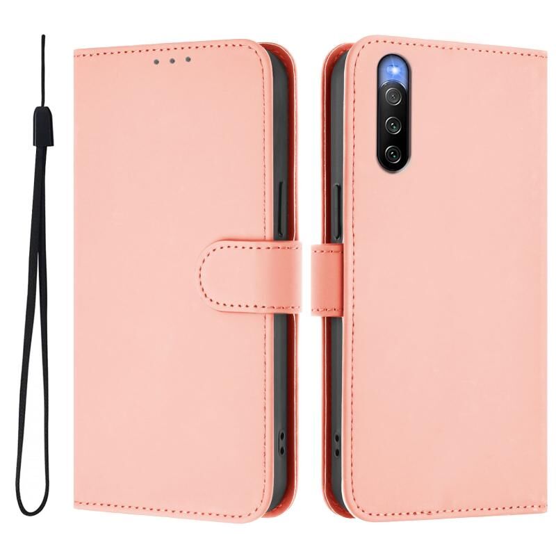 For Sony Xperia 10 V 2023 Skin Feel Solid Color Leather Phone Case with Lanyard(Pink)
