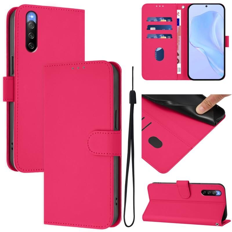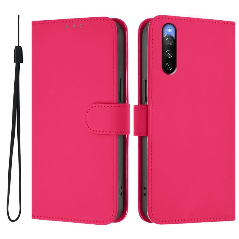 For Sony Xperia 10 V 2023 Skin Feel Solid Color Leather Phone Case with Lanyard(Rose Red)