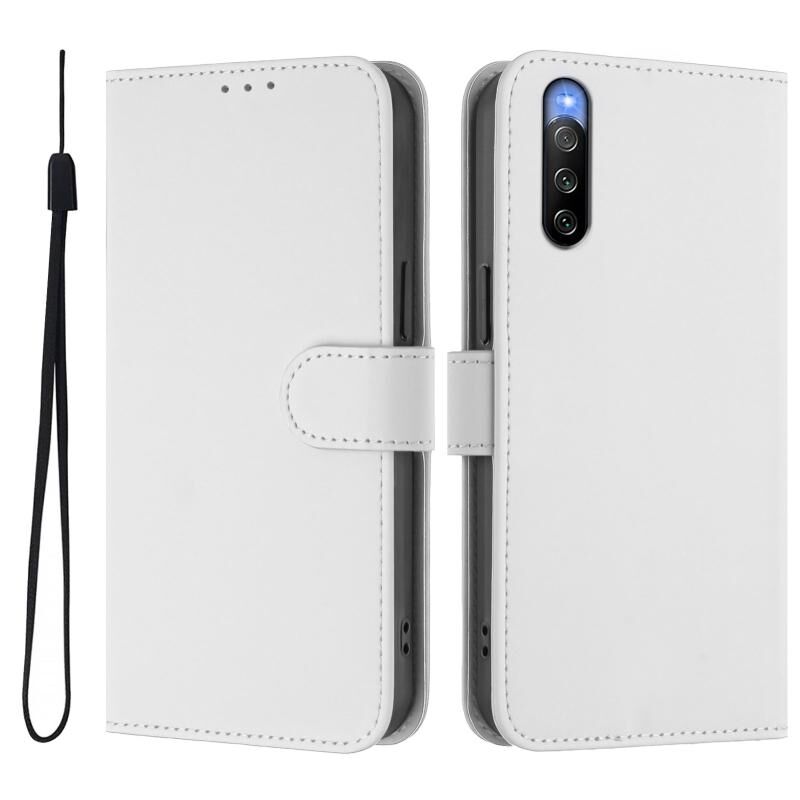 For Sony Xperia 10 V 2023 Skin Feel Solid Color Leather Phone Case with Lanyard(White)