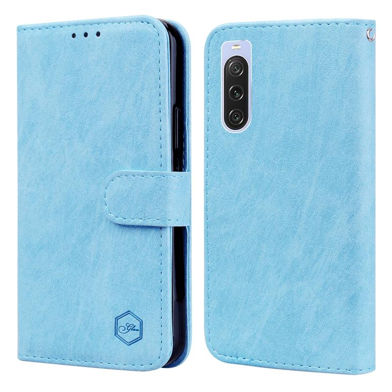 For Sony Xperia 10 V 2023 Skin Feeling Oil Leather Texture PU + TPU Phone Case(Light Blue)