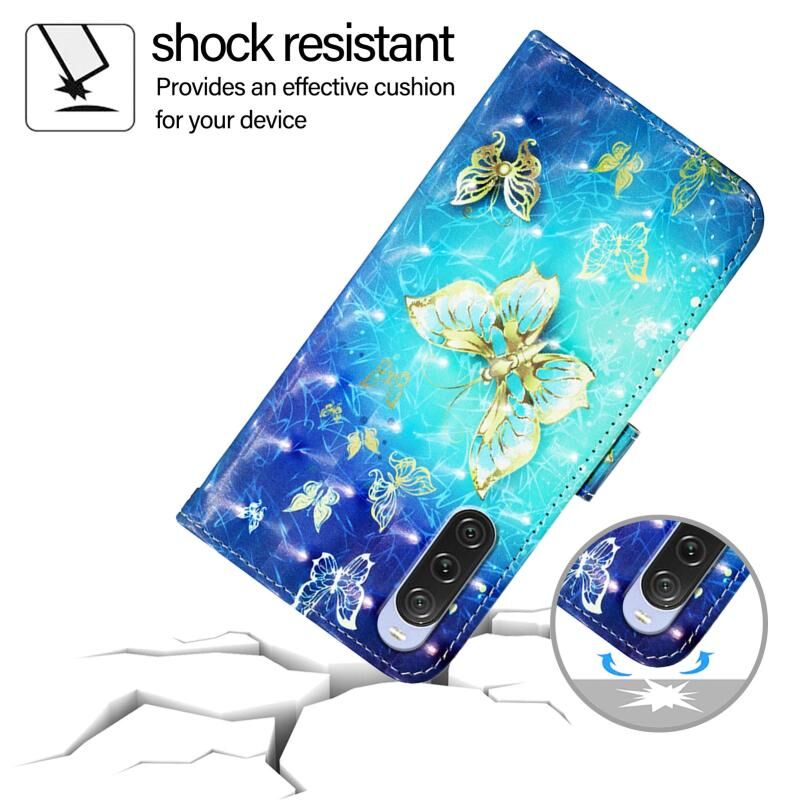 Θήκη τηλεφώνου από δέρμα με οριζόντια αναδίπλωση και τρισδιάστατη ζωγραφική για Sony Xperia 10 V (Χρυσή Πεταλούδα)