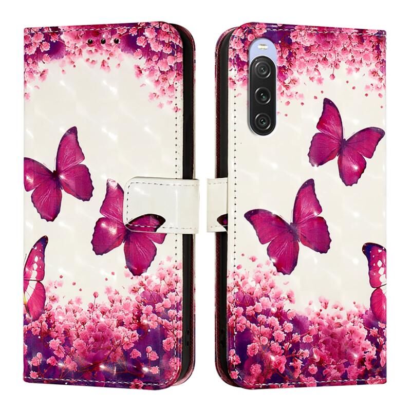 Θήκη τηλεφώνου από δέρμα με οριζόντια αναδίπλωση και τρισδιάστατη ζωγραφική για Sony Xperia 10 V (Ροζ Πεταλούδα)