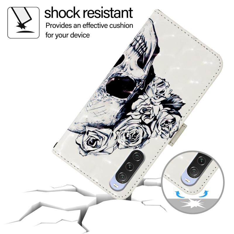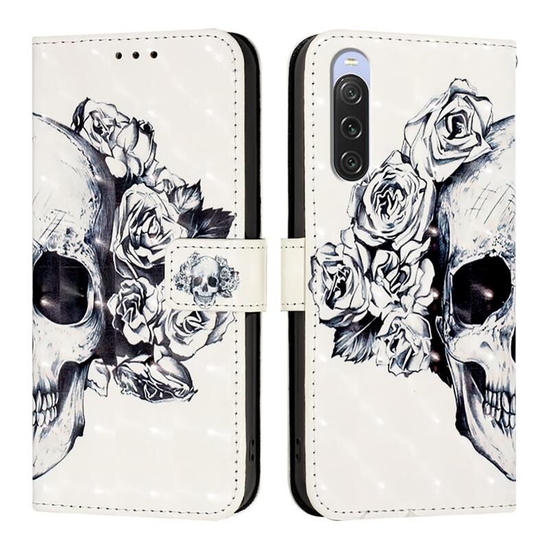 Θήκη τηλεφώνου από δέρμα με οριζόντια αναδίπλωση και τρισδιάστατη ζωγραφική για Sony Xperia 10 V (Κρανίο)