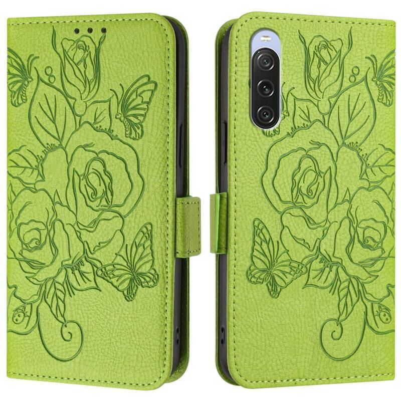 Για Sony Xperia 10 V 4G ανάγλυφο Rose RFID Anti-theft Δερμάτινη θήκη τηλεφώνου (Πράσινο)
