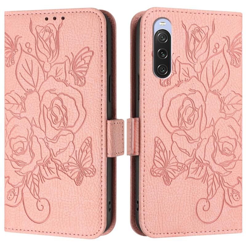 Για Sony Xperia 10 V 4G ανάγλυφο Rose RFID Anti-theft Δερμάτινη θήκη τηλεφώνου (ροζ)
