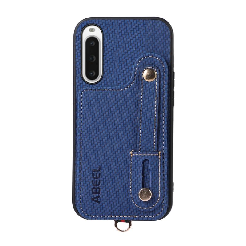 For Sony Xperia 10 V ABEEL Carbon Fiber RFID Card Holder Phone Case(Blue)