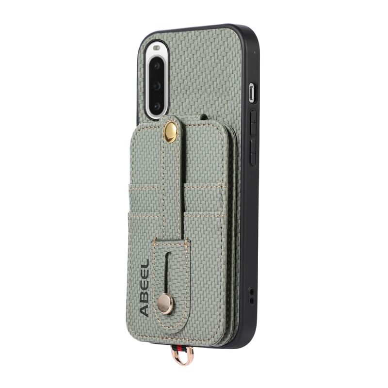 For Sony Xperia 10 V ABEEL Carbon Fiber RFID Card Holder Phone Case(Green)