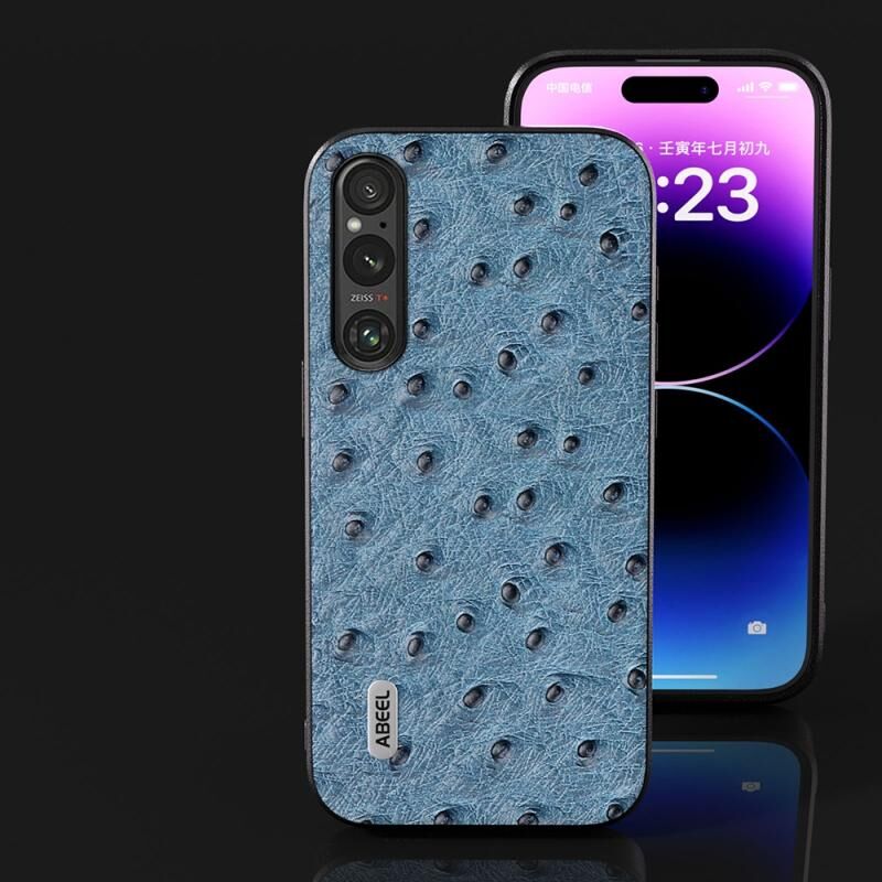 Θήκη τηλεφώνου από γνήσιο δέρμα στρουθοκάμπου για Sony Xperia 10 V ABEEL (Πράσινο)