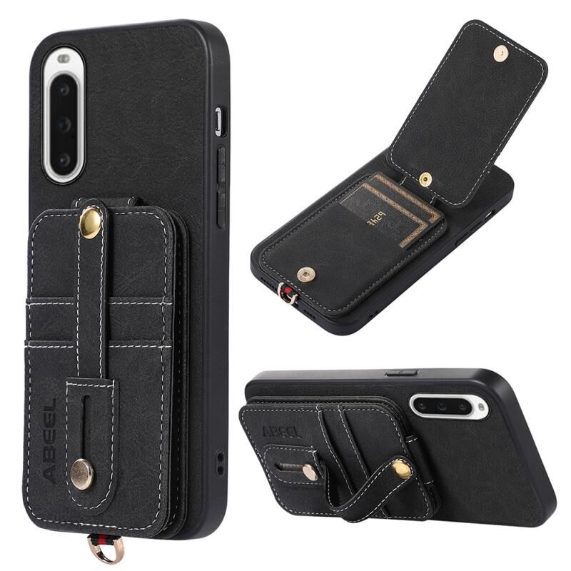 Θήκη κινητού τηλεφώνου από PU με υφή δέρματος λυτσί για Sony Xperia 10 V ABEEL (Μαύρο)