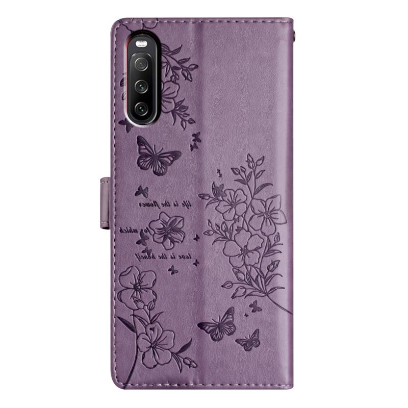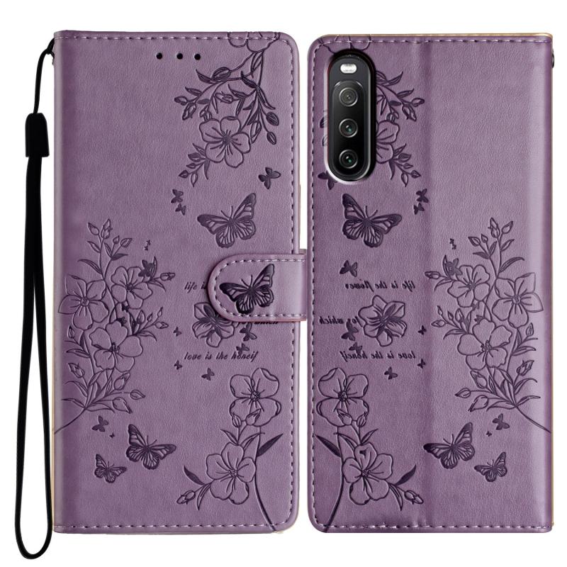 For Sony Xperia 10 V Butterflies and Flowers Leather Phone Case(Purple)