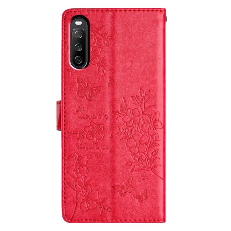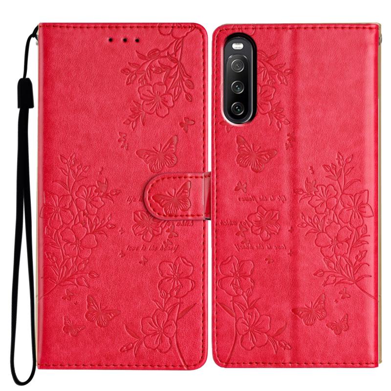 For Sony Xperia 10 V Butterflies and Flowers Leather Phone Case(Red)