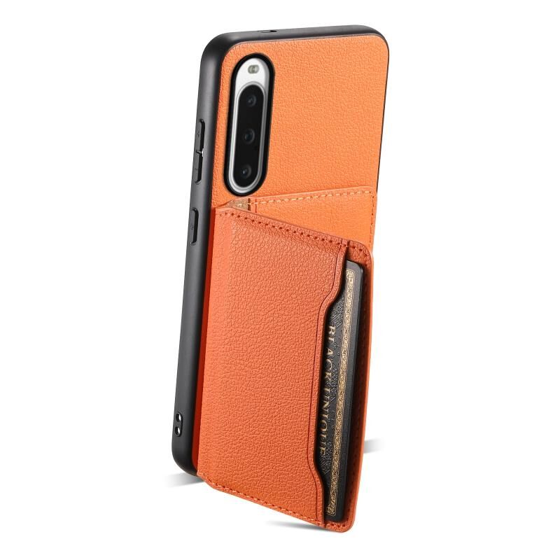 Θήκη κινητού τηλεφώνου με υφή μοσχαρίσιου δέρματος και σχέδιο τσάντας για Sony Xperia 10 V, πλήρης κάλυψη (Μαύρο)