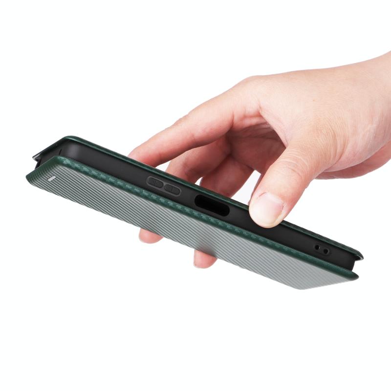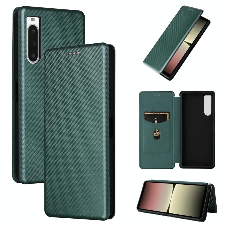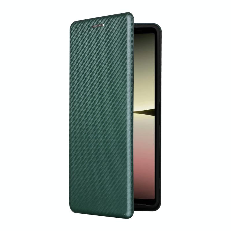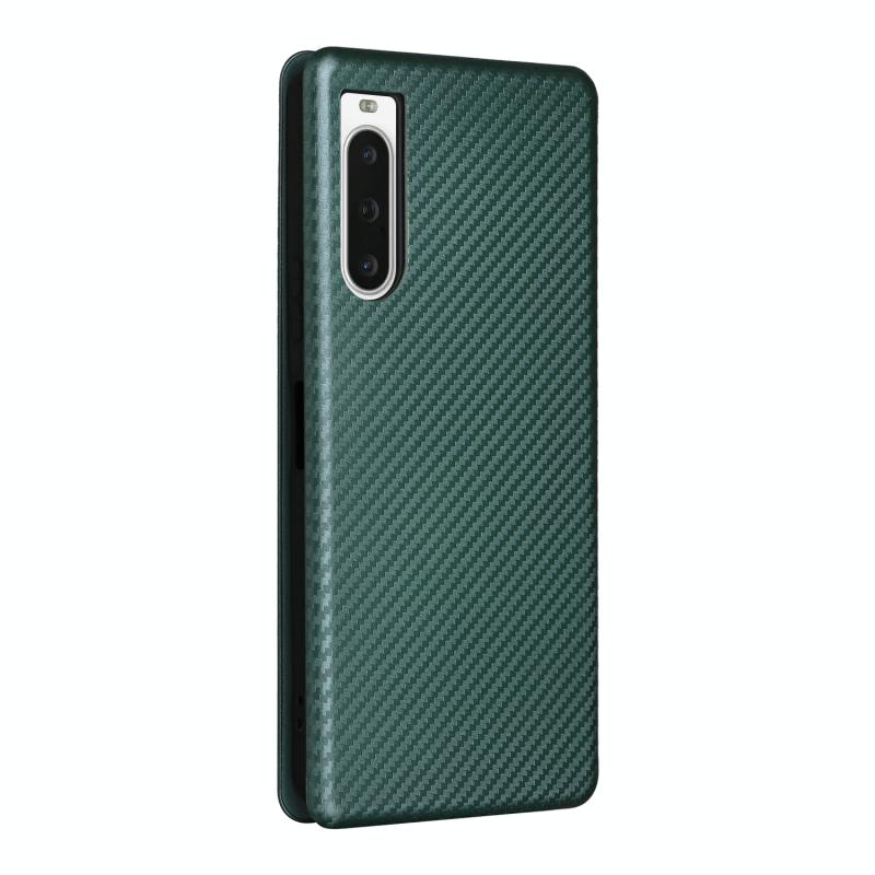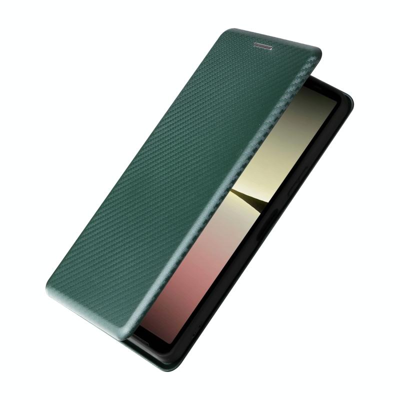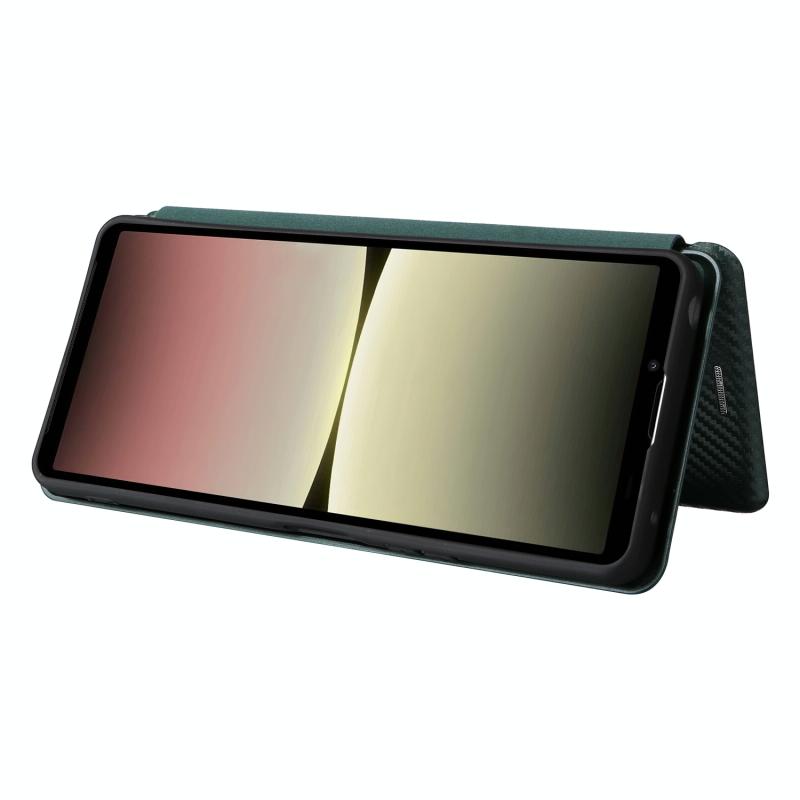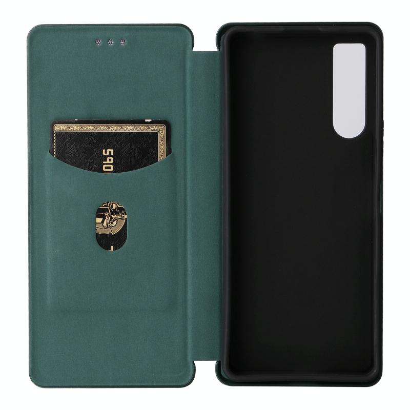 Θήκη τηλεφώνου από δέρμα με υφή ανθρακονημάτων για Sony Xperia 10 V (Καφέ)