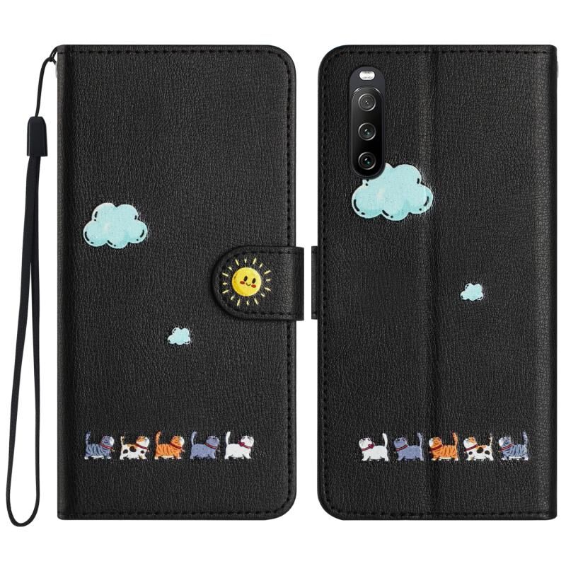 Θήκη τηλεφώνου από δέρμα με σχέδια κινούμενων σχεδίων για Sony Xperia 10 V (Κόκκινο)