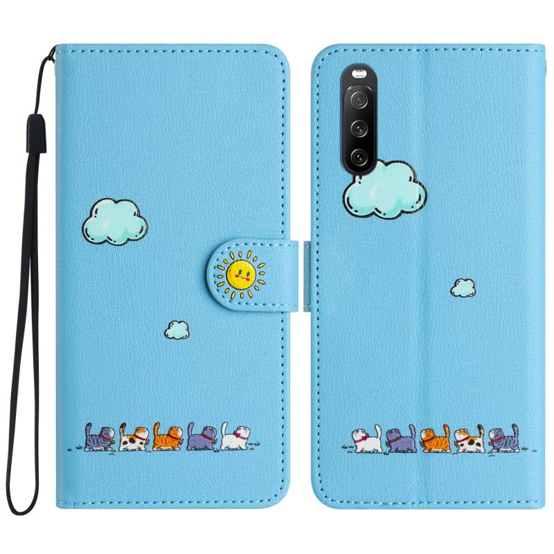 For Sony Xperia 10 V Cartoon Cats Leather Phone Case(Blue)