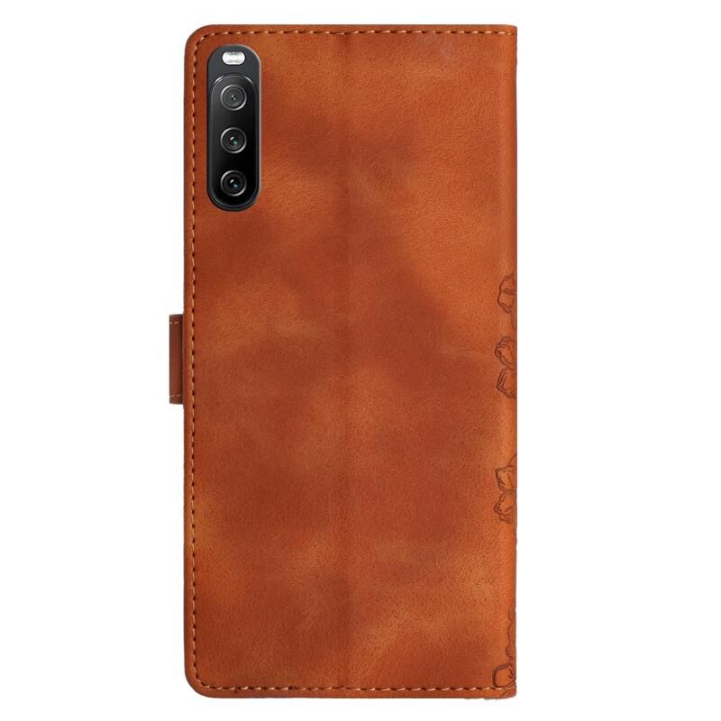 Θήκη τηλεφώνου για Sony Xperia 10 V Cherry Blossom Butterfly Skin Feel Embossed PU (Κόκκινη)