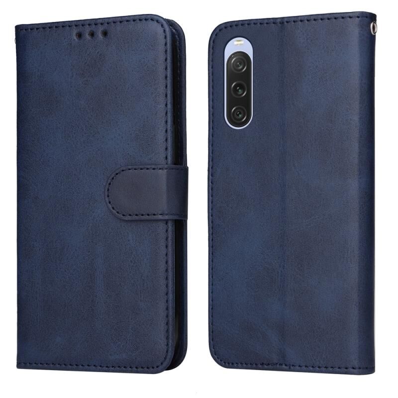 Για Sony Xperia 10 V Κλασική θήκη τηλεφώνου από δέρμα με υφή μοσχαριού (μπλε)