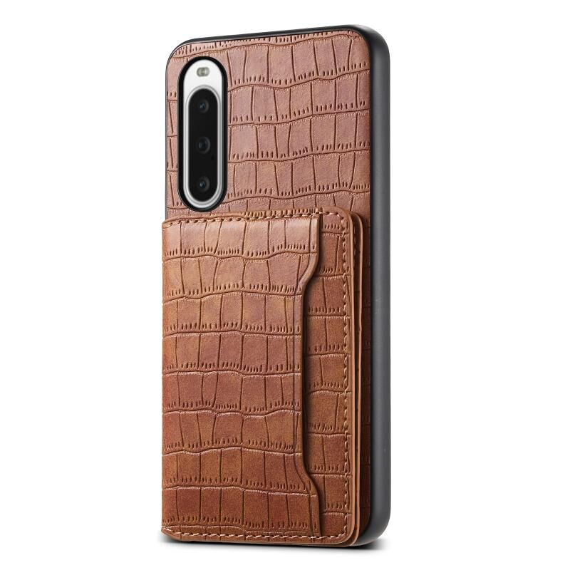 Θήκη κινητού τηλεφώνου πλήρους κάλυψης με σχέδιο τσάντας από υφή κροκόδειλου για Sony Xperia 10 V (Καφέ)