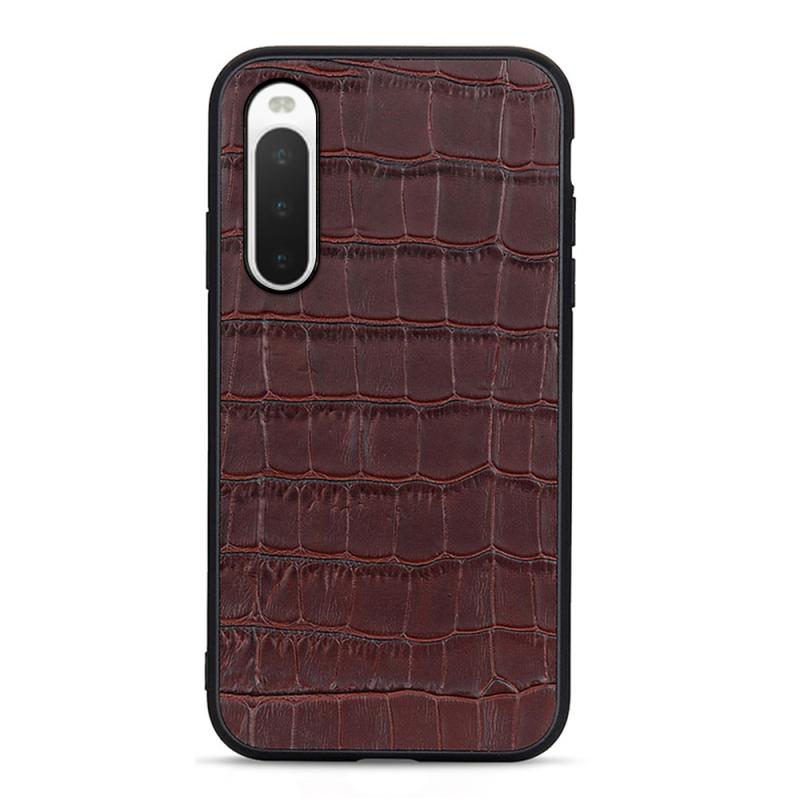 Θήκη τηλεφώνου από γνήσιο δέρμα με υφή κροκόδειλου για Sony Xperia 10 V (Μαύρο)