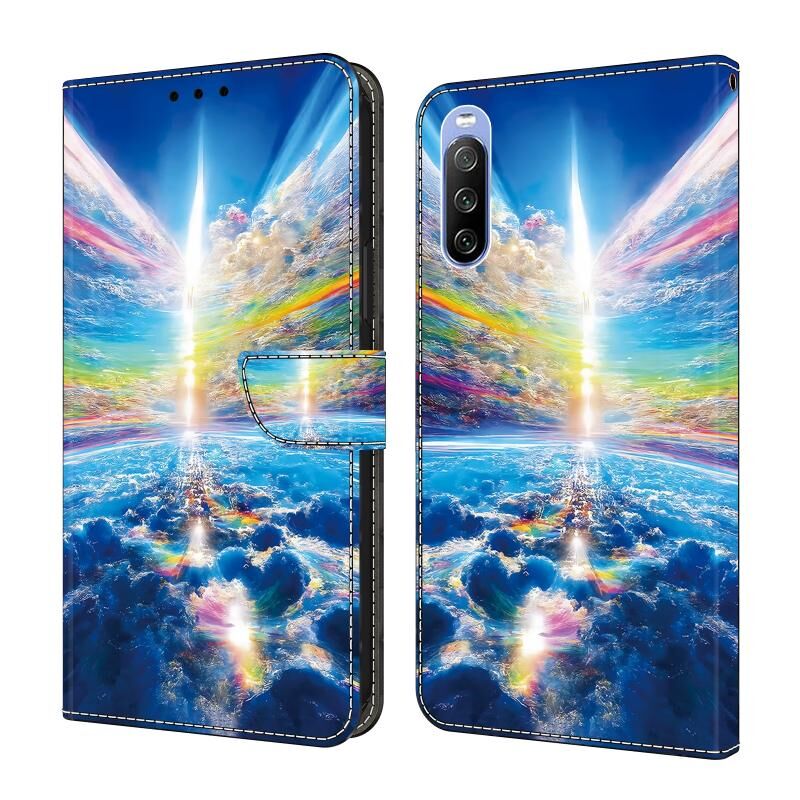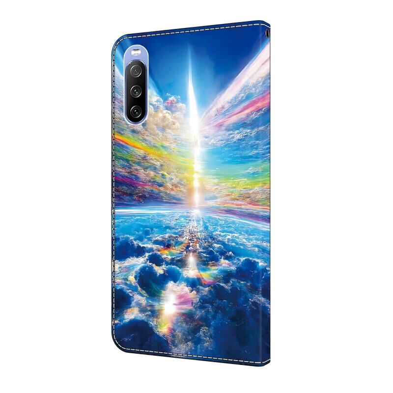 Θήκη τηλεφώνου από δέρμα βαμμένο με κρύσταλλα για Sony Xperia 10 V (Χρωματιστός Ουρανός)