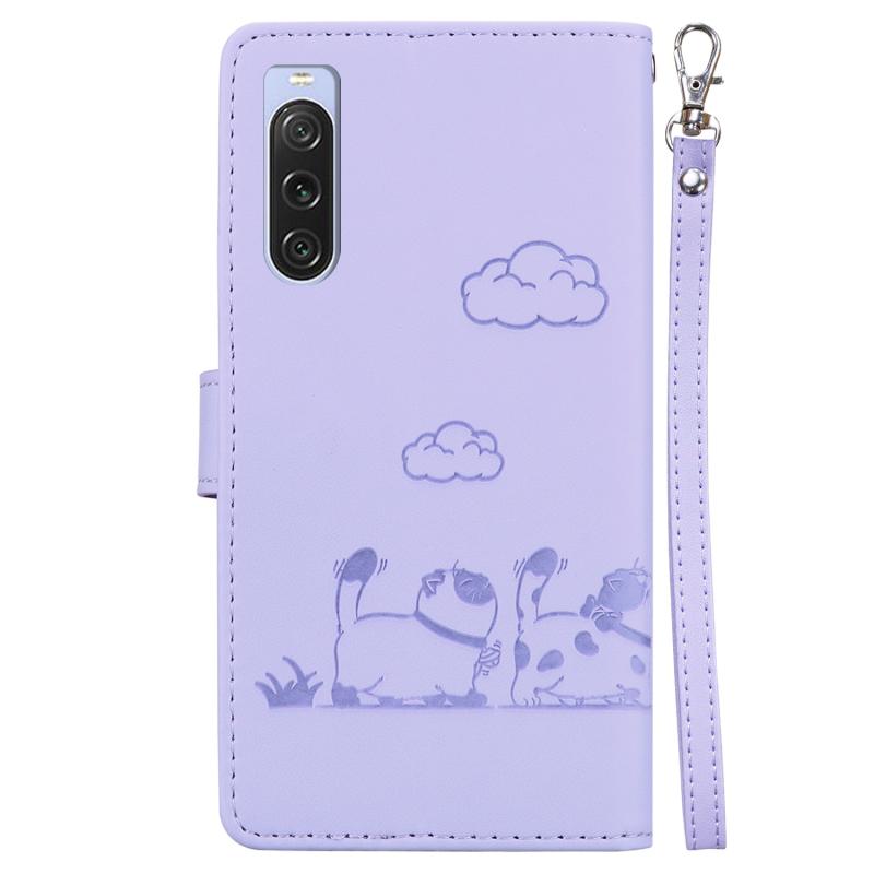 For Sony Xperia 10 V Cute Cats RFID Leather Phone Case(Purple)