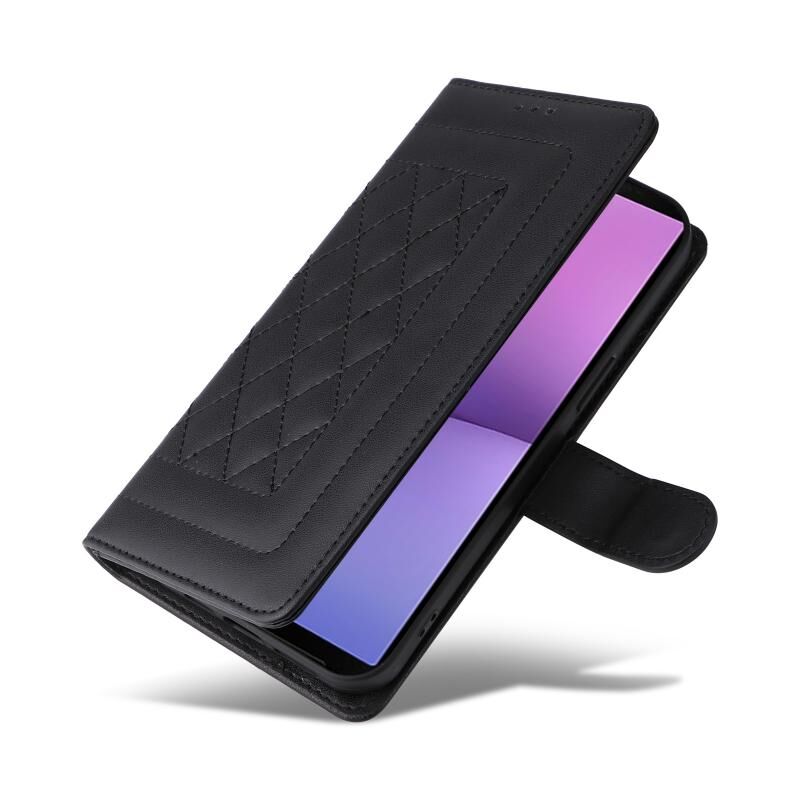 For Sony Xperia 10 V Diamond Lattice Leather Flip Phone Case(Black)
