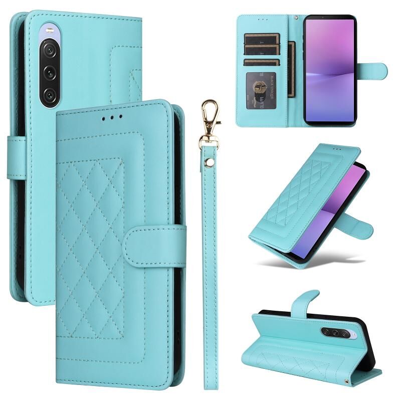 For Sony Xperia 10 V Diamond Lattice Leather Flip Phone Case(Mint Green)