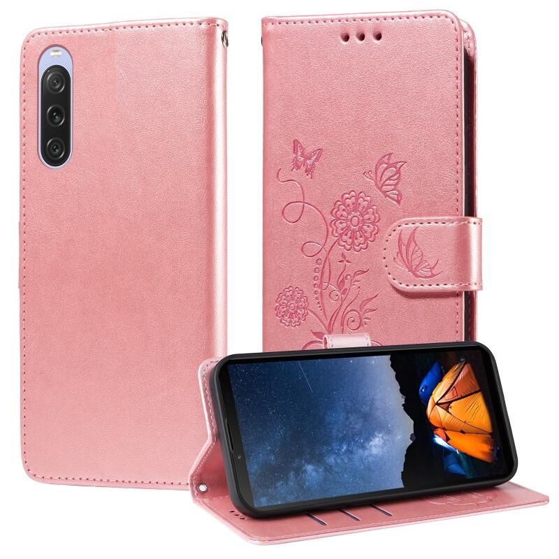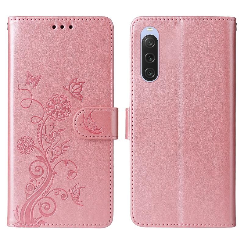 Θήκη τηλεφώνου δερμάτινη με ανάγλυφα λουλούδια πεταλούδας για Sony Xperia 10 V (Μωβ)