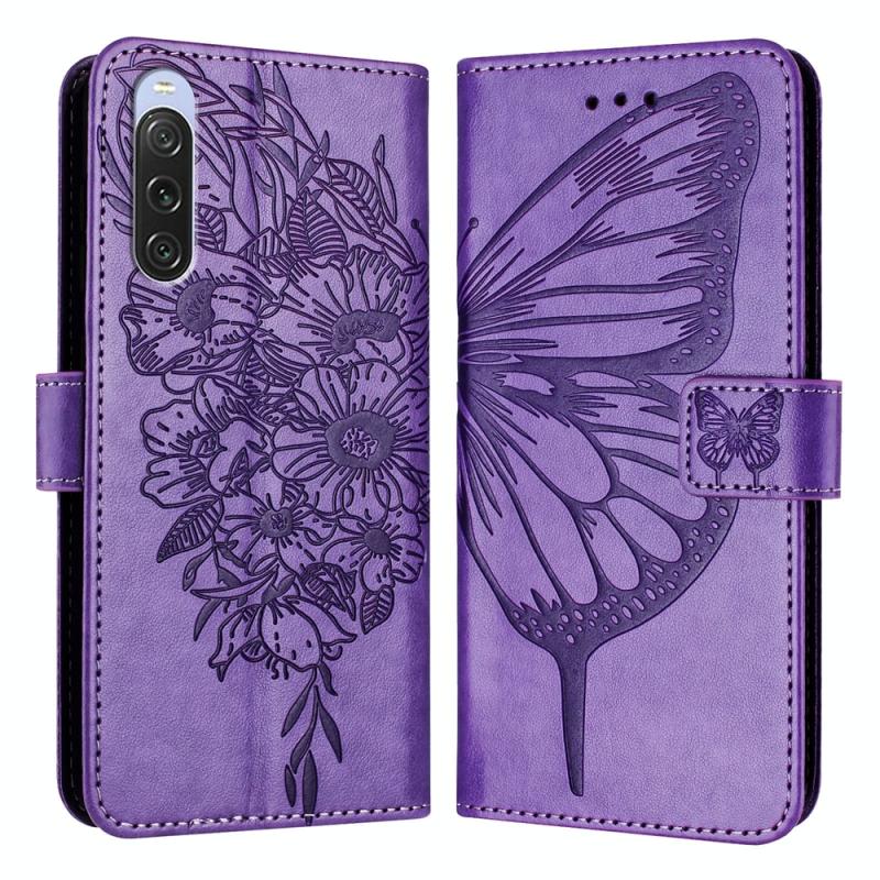 For Sony Xperia 10 V Embossed Butterfly Leather Phone Case(Light Purple)