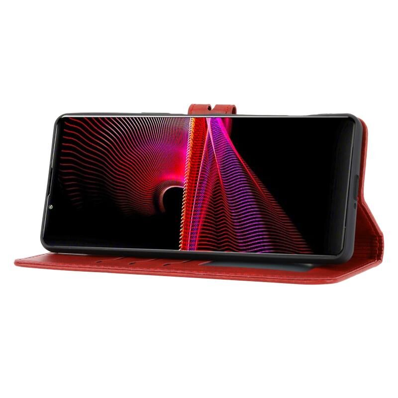 Για το Sony Xperia 10 V ανάγλυφο Happy Cat μοτίβο Flip δερμάτινη θήκη τηλεφώνου (κόκκινο)