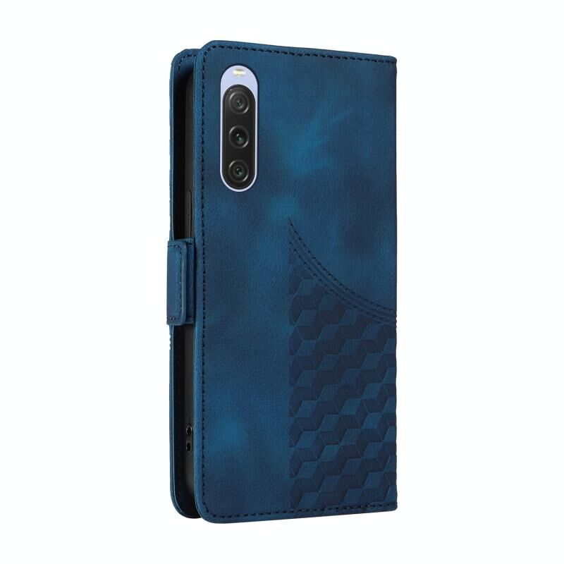 Για το Sony Xperia 10 V ανάγλυφο ρόμβο αστερόεσσα δερμάτινη θήκη τηλεφώνου (μπλε)