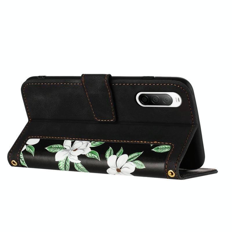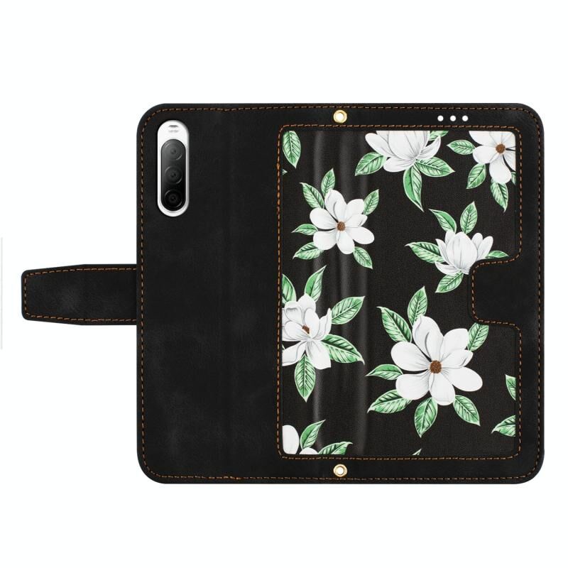 Θήκη τηλεφώνου από δέρμα με λουλουδάτο σχέδιο για Sony Xperia 10 V με κορδόνι (Ανοιχτό Μπλε)