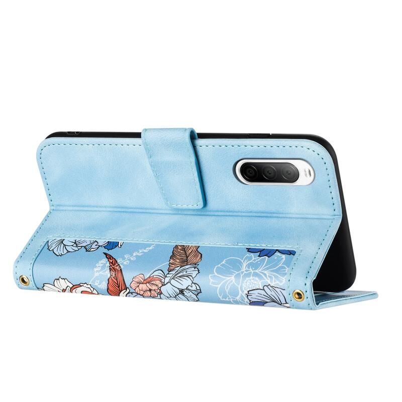 Θήκη τηλεφώνου από δέρμα με λουλουδάτο σχέδιο για Sony Xperia 10 V με κορδόνι (Ανοιχτό Μπλε)