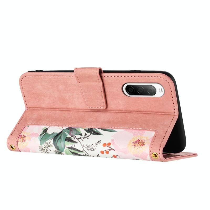Θήκη τηλεφώνου από δέρμα με λουλουδάτο σχέδιο για Sony Xperia 10 V με κορδόνι (Ανοιχτό Μπλε)
