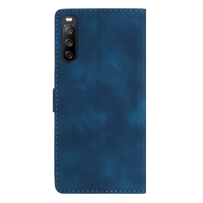 Θήκη τηλεφώνου δερμάτινη με ανάγλυφο σχέδιο λουλουδιών πεταλούδας για Sony Xperia 10 V (Μπλε)