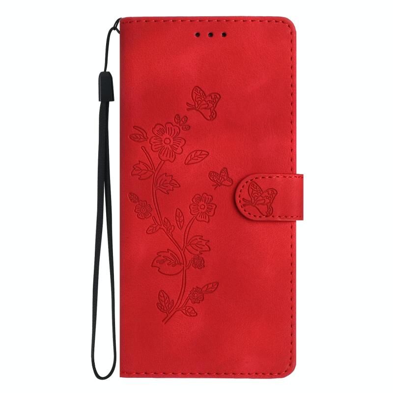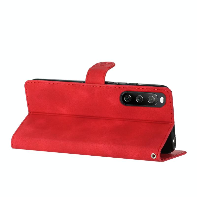 Θήκη τηλεφώνου δερμάτινη με ανάγλυφο σχέδιο λουλουδιών πεταλούδας για Sony Xperia 10 V (Κόκκινο)