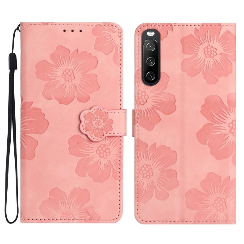 Για Sony Xperia 10 V λουλούδι ανάγλυφο μοτίβο δερμάτινη θήκη τηλεφώνου (ροζ)