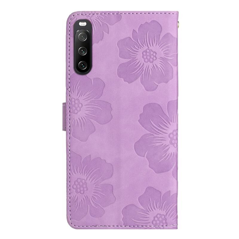 Για Sony Xperia 10 V λουλούδι ανάγλυφο μοτίβο δερμάτινη θήκη τηλεφώνου (μωβ)
