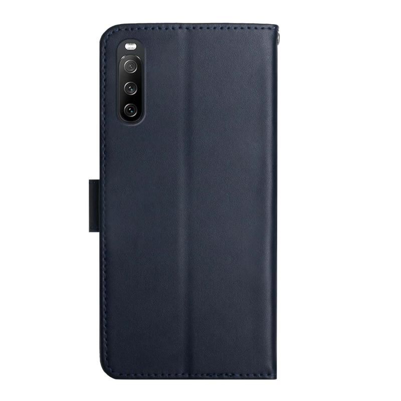 Θήκη τηλεφώνου οριζόντιας αναδίπλωσης από γνήσιο δέρμα, ανθεκτική στα δακτυλικά αποτυπώματα για Sony Xperia 10 V (Μπλε)