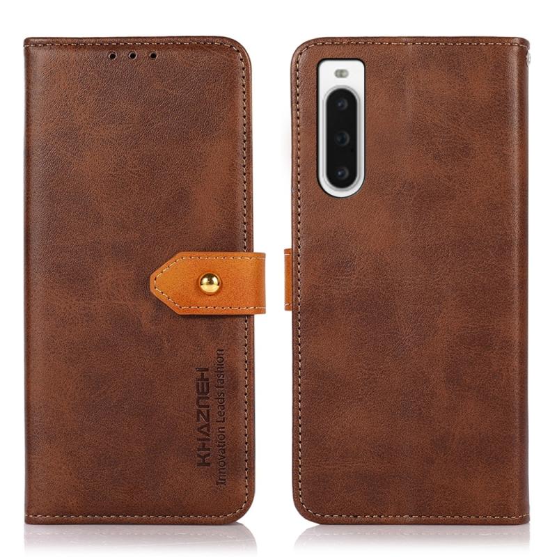 Θήκη τηλεφώνου δερμάτινη αναδιπλούμενη με υφή δέρματος αγελάδας διχρωμίας KHAZNEH για Sony Xperia 10 V (Καφέ)