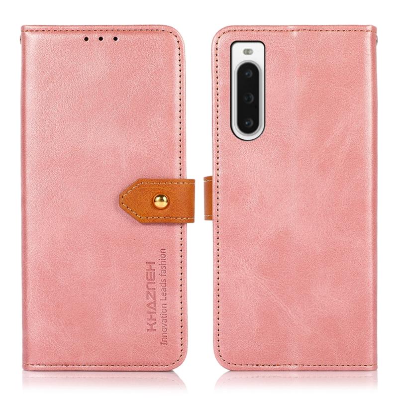 Θήκη τηλεφώνου από δέρμα με υφή δερμάτινου μοσχαριού διχρωμίας KHAZNEH για Sony Xperia 10 V (Χρυσό Ρόδι)