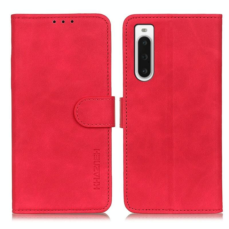 Θήκη τηλεφώνου από δέρμα με οριζόντιο άνοιγμα και ανάγλυφη υφή Retro KHAZNEH για Sony Xperia 10 V (Μπλε)
