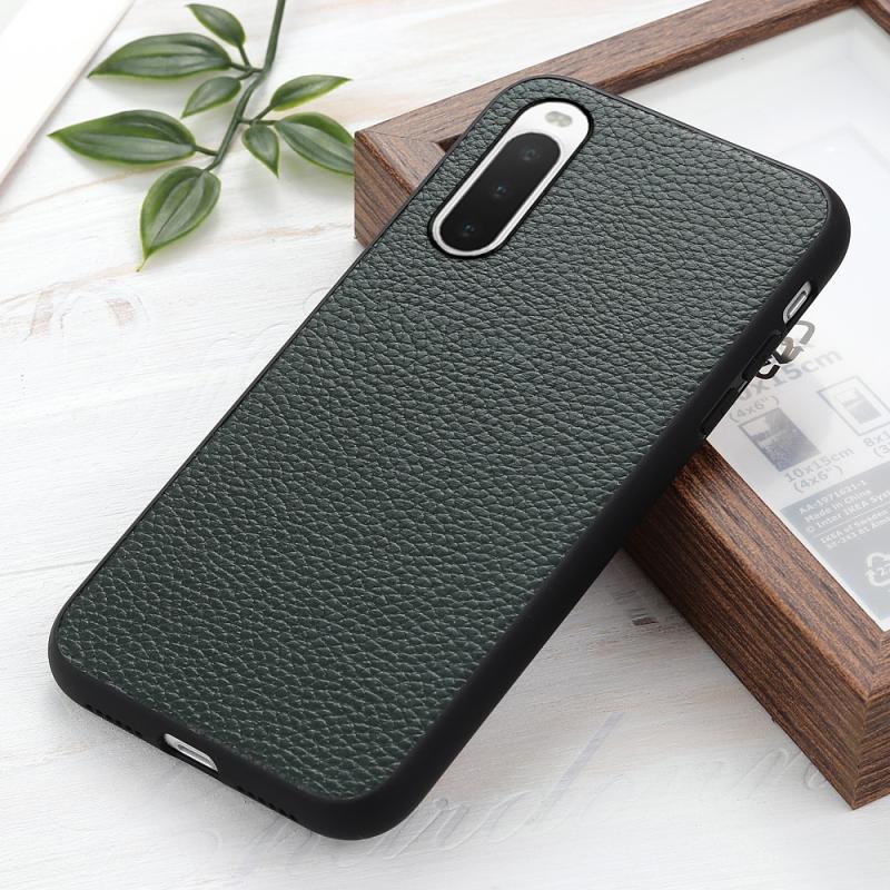 Θήκη τηλεφώνου από γνήσιο δέρμα με υφή Litchi για Sony Xperia 10 V (Πράσινο)