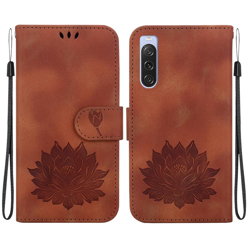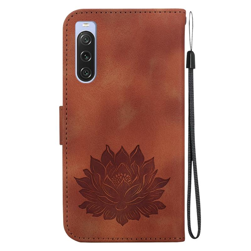 For Sony Xperia 10 V Lotus Embossed Leather Phone Case(Brown)