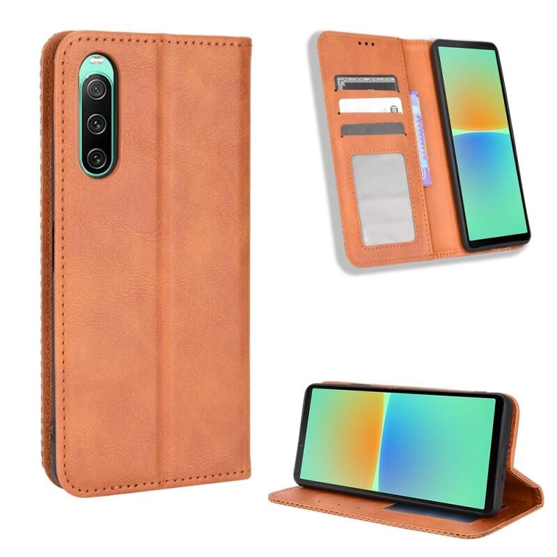 Για το Sony Xperia 10 V Μαγνητική πόρπη ρετρό υφή δερμάτινη θήκη τηλεφώνου (καφέ)
