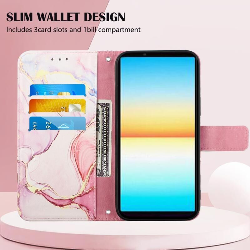 Θήκη τηλεφώνου από δέρμα με σχέδιο μάρμαρου για Sony Xperia 10 V PT003 (Λευκό-Μωβ LS006)