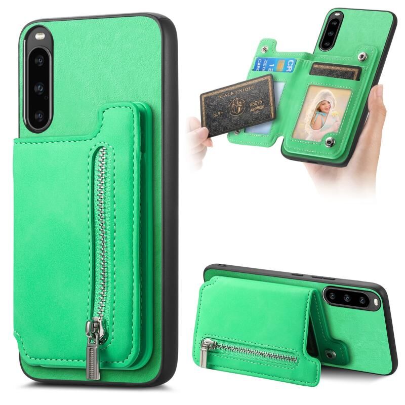 For Sony Xperia 10 V Retro MagSafe Zipper Wallet Card Bag Back Phone Case(Green)
