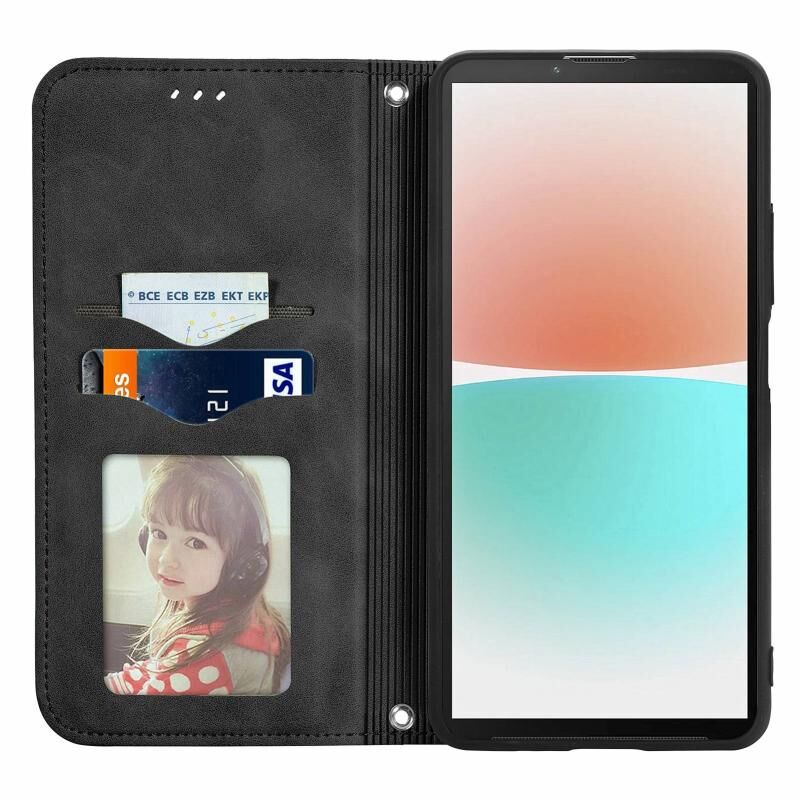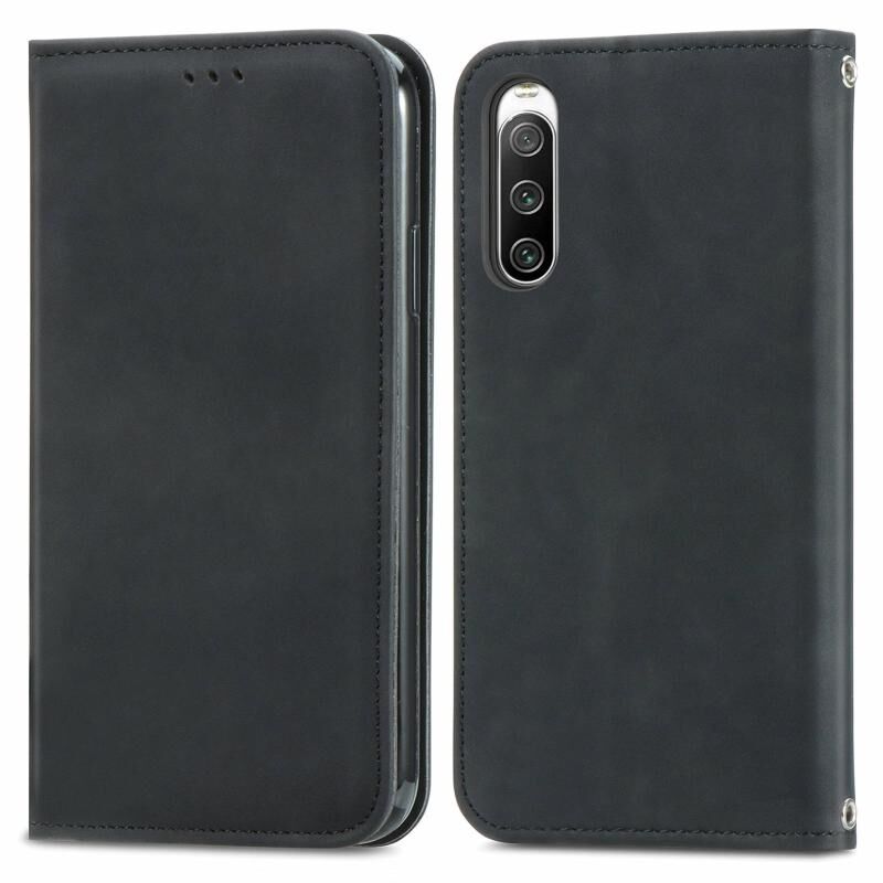 Για Sony Xperia 10 V Retro δέρμα αίσθηση μαγνητική Flip δέρμα τηλέφωνο υπόθεση (μαύρο)
