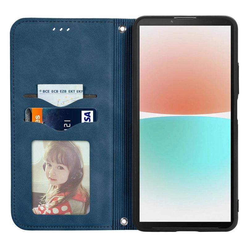 Για το Sony Xperia 10 V Retro δέρμα αίσθηση μαγνητική Flip δέρμα τηλέφωνο υπόθεση (μπλε)